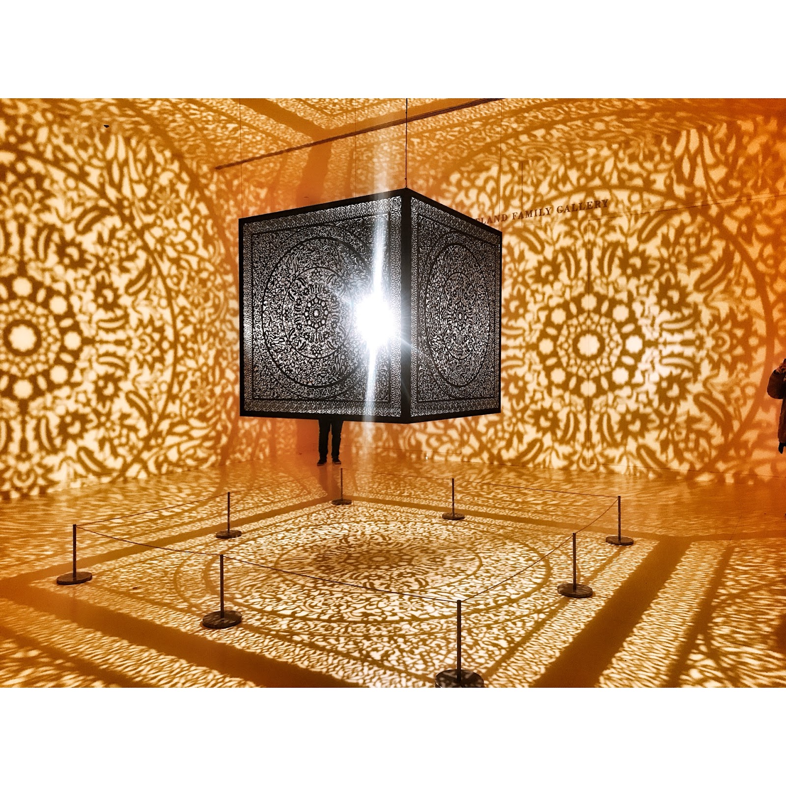 Persian and Turkish architecture, textiles and miniature paintings inspire the precise, stylized floral forms that compose Anila Quayyum Agha’s sculptural chamber of light and shadow. This luminous installation provides an opportunity to contemplate the differences and commonalities that shape our lives and relationships.